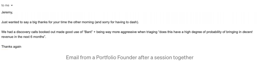 We’re practical investors. Beyond supporting our portfolio on qualification frameworks, you can find us building SDR compensation plans, watching recorded sales calls and making suggested improvements, leveraging our network and LPs to make introductions to prospects and also just hanging out with our Founders in our offices. If you’re looking for investment, reach out via our pitch-us form and we’ll respond within 14 days.